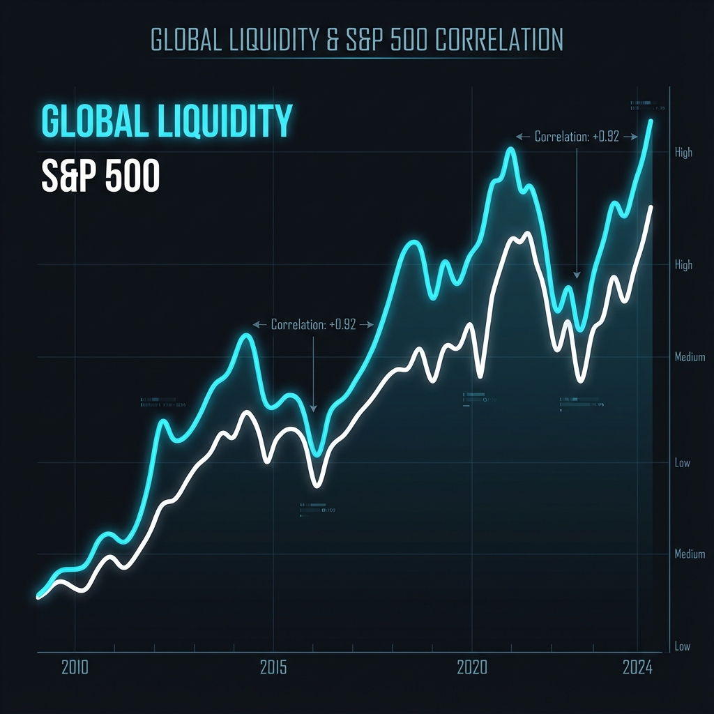 Global liquidity is the fuel that drives financial markets. When central banks expand their balance sheets and money supply grows, asset prices tend to rise. When liquidity contracts, markets often struggle.