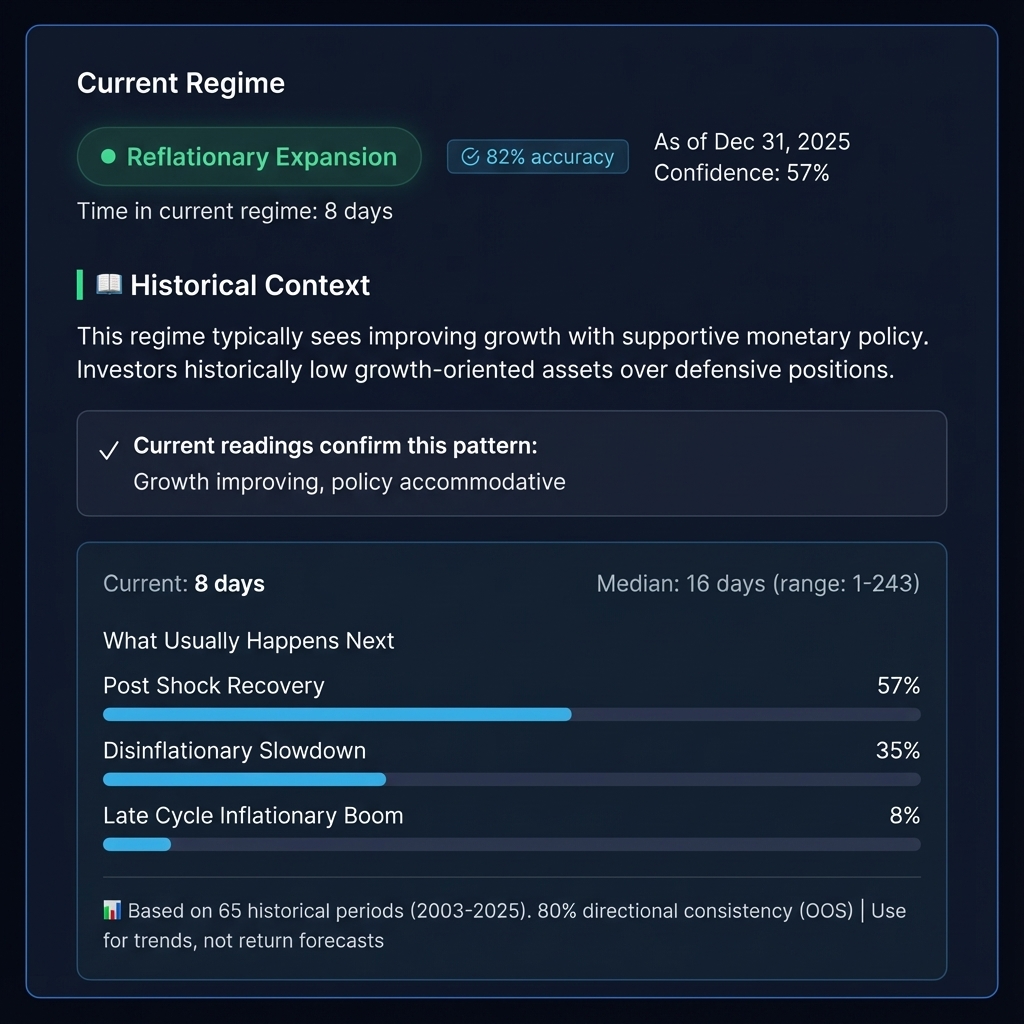 Important: Regime analysis provides context, not trading signals. Past regime performance doesn't guarantee future results.